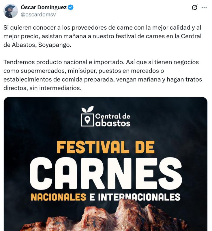 El Salvador celebrará mañana un festival de carnes en la Central de Abastos de Soyapango, una iniciativa gubernamental que se alinea con las estrategias regionales para modernizar las cadenas de suministro de alimentos y promover mayor competitividad entre productores y distribuidores. El anuncio fue realizado este viernes por el viceministro de Agricultura, Óscar Domínguez.